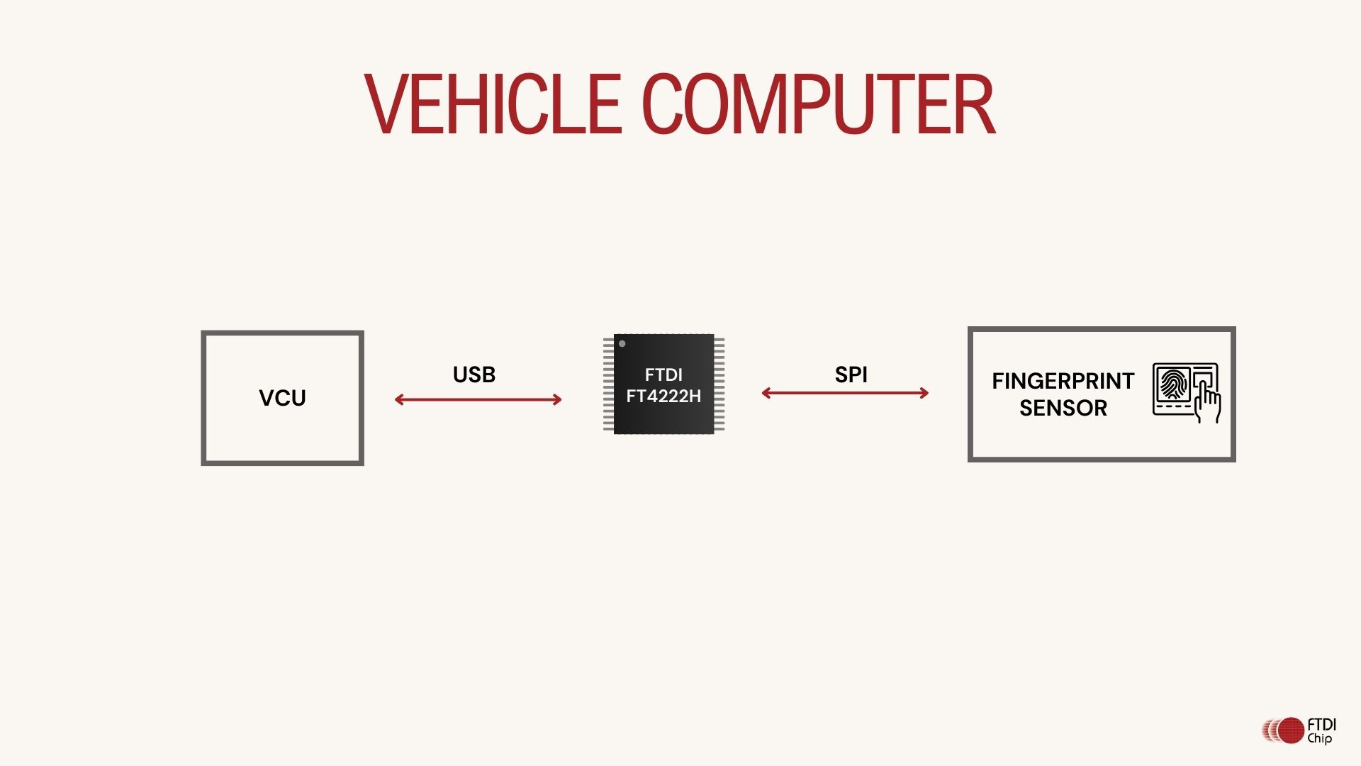 An automotive vehicle computer with a fingerprint dongle for car networking is an advanced system designed to enhance vehicle security, personalization and connectivity. FTDI provides a USB to SPI bridge for the Vehicle Computer (VCU) to the Fingerprint Sensor. Here’s a detailed description of its components and functionalities.