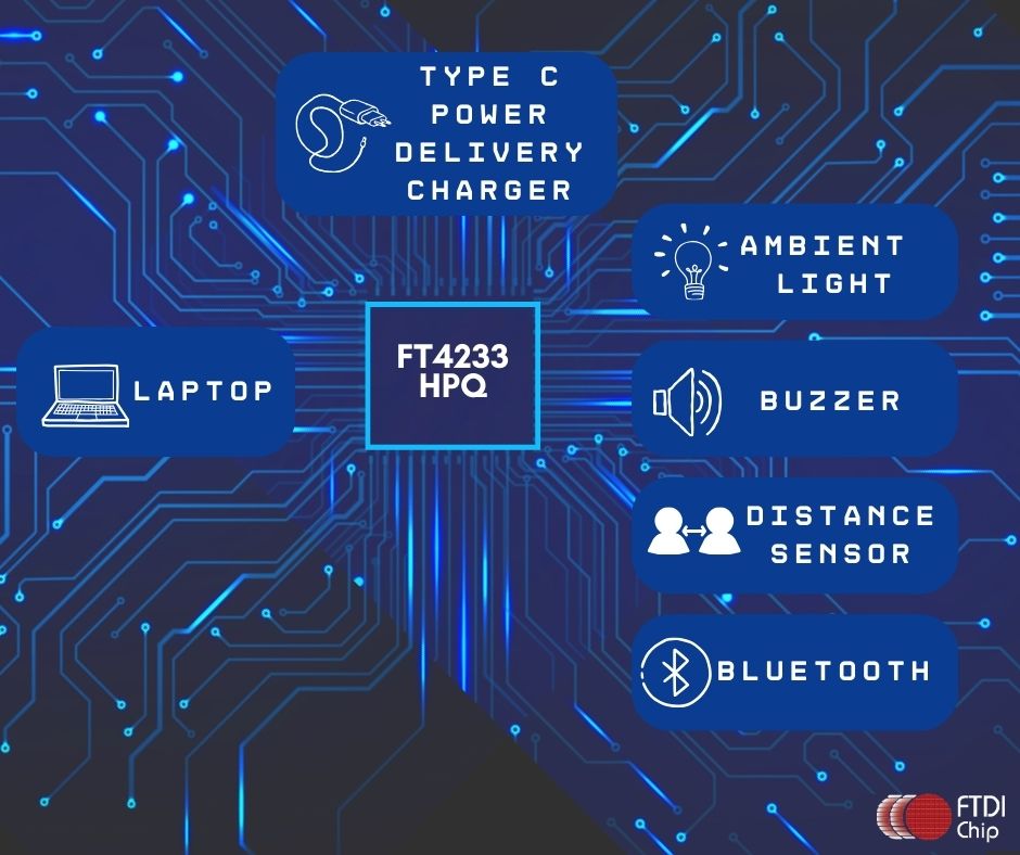 The same real world applications are possible with FT4233HP as with the original FT4232H IC with added power options to help future proof your design. However, do note that the connected USB Host hardware (eg laptop, tablet, handheld) must support USB Power Delivery otherwise default USB 2.0 power as sink is only allowed.